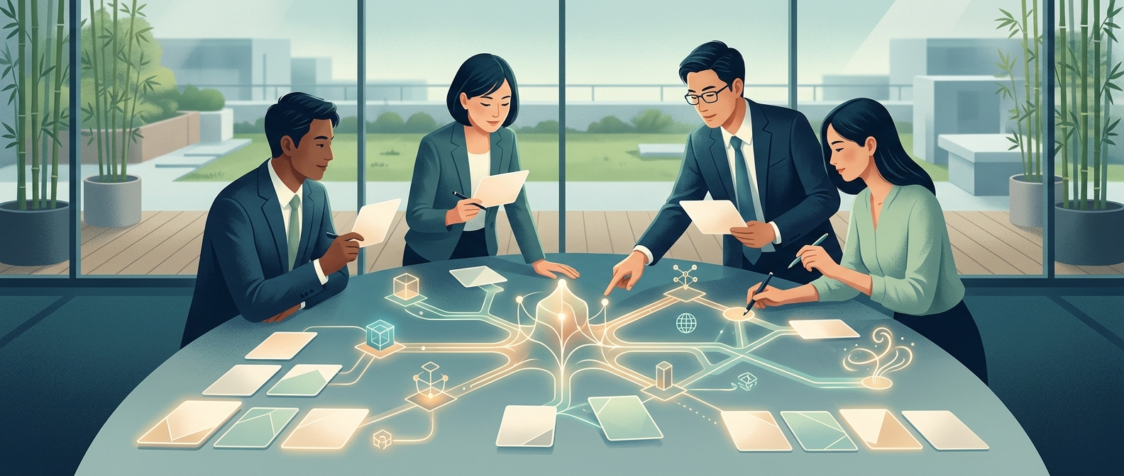 AI導入記事では、ツール比較より先に対象業務、体制、ルール、KPI、展開順序を置くべきという編集ルール。